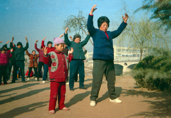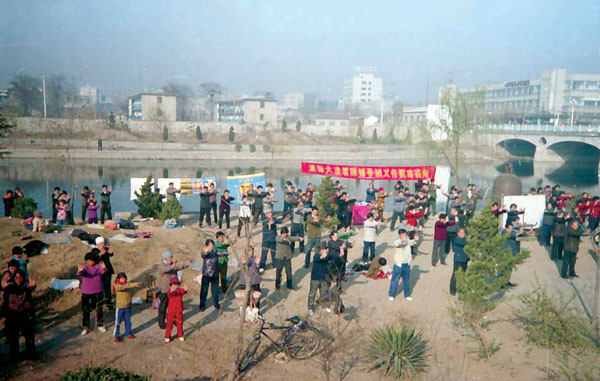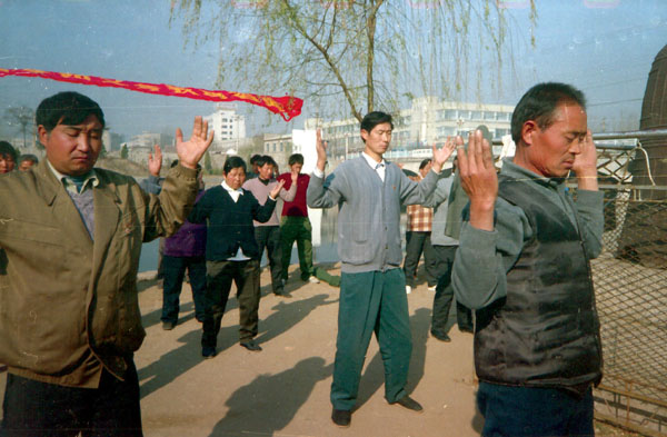 【明慧网二零零八年二月二十七日】一九九五年,山东蒙阴大法弟子在汶溪公园炼功洪法图片。