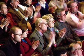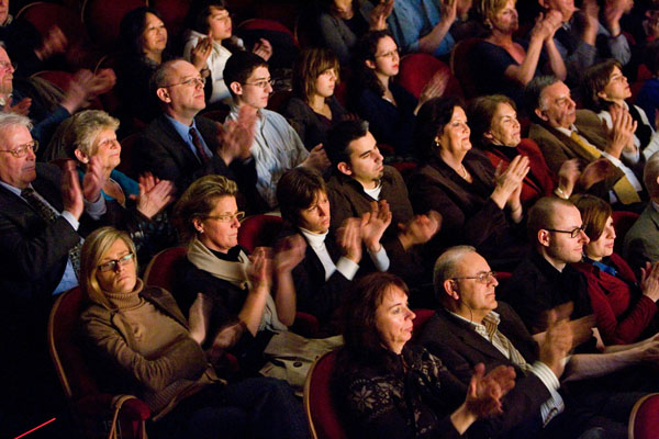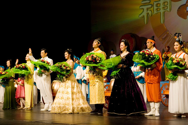 ![]() 神韵晚会于二十七日的演出,再次出现观众长时间起立鼓掌,演员三次谢幕的轰动场面。大幕三次因观众热烈掌声而再次拉开。观众热烈鼓掌,久久不愿离去。 |
