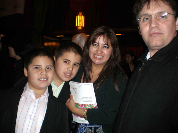 Rene一家离开剧场时欢喜之声吸引了记者。“太美了,我们非常喜欢。对孩子们很有教育意义。”Rene的太太Grace说。
