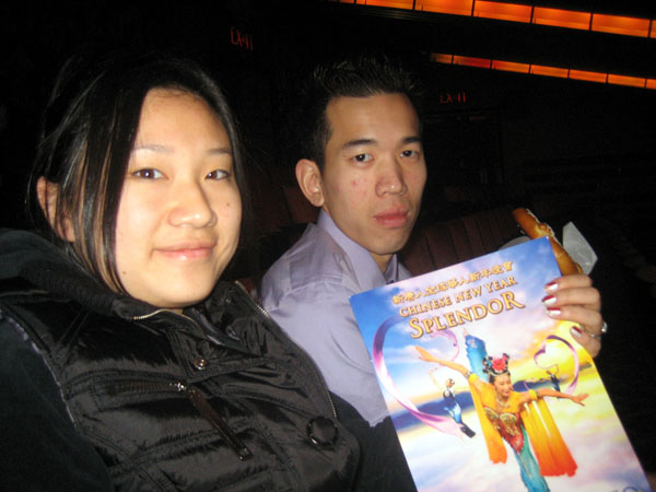 ![]() 年轻一代的华人Frances Liang 喜欢中国文化和朋友Simon一起来看表演 |
