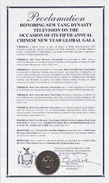 鉴于,新唐人电视台成立六年来,向观众提供了真实、客观的资讯,丰富人们的知识和生活,为中文媒体业达到资讯自由流通和多元化贡献力量,促进东西方的文化交流,并帮助海外华人适应和融入主流社会;并且,