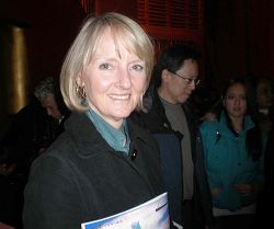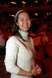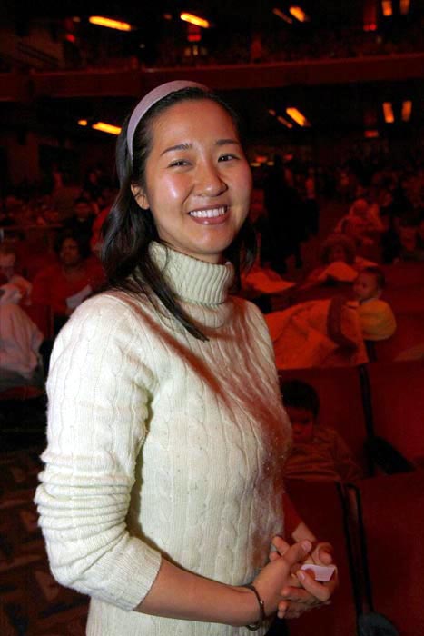 来自中国上海从事画画的一位中年女士,是神韵艺术团的爱好者,从曼哈顿知道晚会消息,今天首次观看,觉得每个节目都很好看,都喜欢,选不出哪个更好。由于她是画画的,很欣赏天幕与服装的色彩与构图。