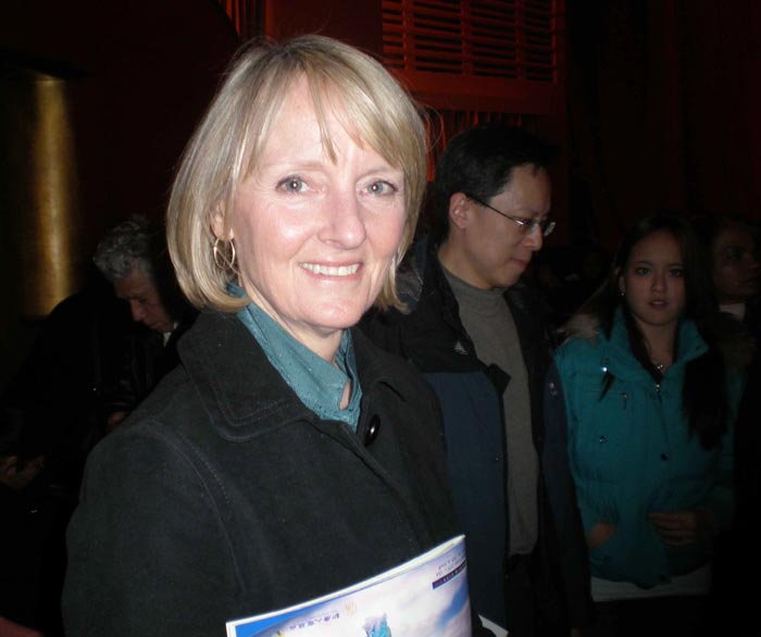 维多利亚表示最喜欢那巧妙的编舞,那个描述当中国遭北方外敌入侵,武士忍痛离开母亲、报效国家的舞剧(《精忠报国》)尤其让她感动。切斯特先生表示了对夫人看法的赞同,他最喜欢击鼓的舞蹈,因为他“爱那振奋人心的鼓的轰鸣”。“不过更感动我心灵的是表现法轮功学员遭中共警察迫害的舞蹈(《升起的莲》),我看了那情节很受感动。”