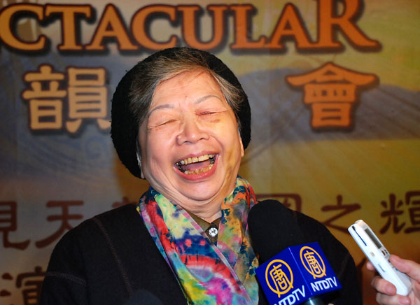 问黄妈妈最喜欢什么,八十岁的她笑着说:“服装很漂亮,男演员打鼓我感觉很有力。”