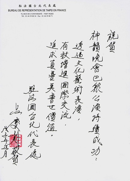 法国会议员、VAL D'DISE省议会主席Francois Scellier先生和夫人Jarce Framcine 观演出后表示,非常享受这场演出;“节目太精彩了,服装非常美丽,舞蹈很好看,中国鼓的表演很特别,很有气势。”