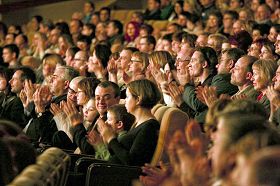 美国神韵巡回艺术团在欧洲名城布拉格的国际会议中心大厅于三月十日,拉开了两天三场的首场演出,在观众的长时间掌声中落下帷幕,演员两度谢幕。