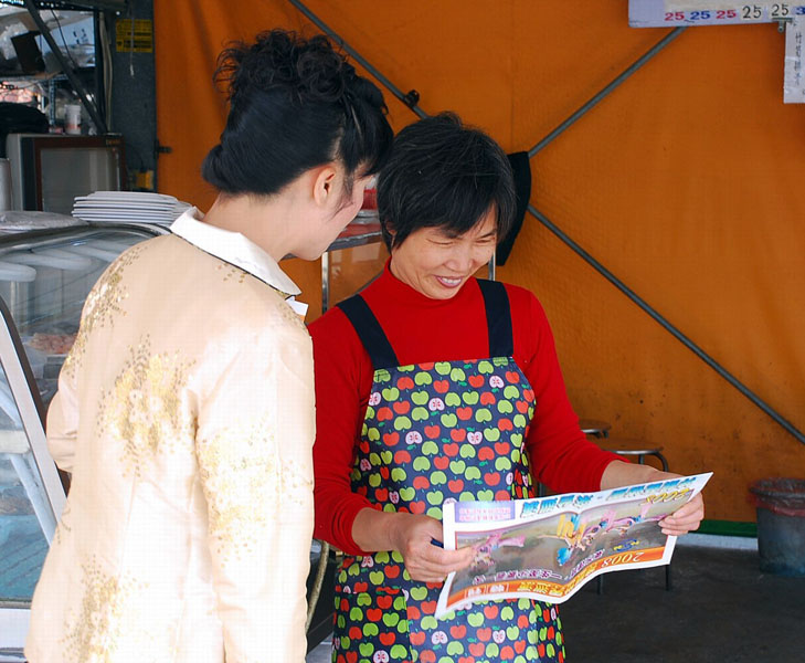 Tomkovi先生是个景观建筑师,他说要想看懂这个节目事先要了解一些中国文化,要去读一些东西才可以。他拿着手里的节目册说,这个节目册给他的帮助很大,他读了里面的介绍才知道里面的舞蹈是什么意思,他觉得这个舞蹈的后面有一些深层的内容,如果不读这个节目册他就不能明白这个舞蹈里表达的深层的内容。