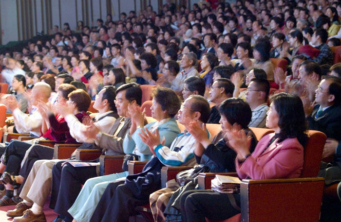 就在上周日神韵在台中市的首演,有一位嘉义县民雄乡的老太太被家人带来了,她看完后也是赞不绝口,回去后就告诉朋友说太好看了,叫大家一定要去看。朋友问她到底是怎么好看,这位老太太一时也答不出来,她大概平常喜欢看歌仔戏吧,就激动的说:“比歌仔戏好看几十倍、几百倍、几千倍,几万倍,这样你了解吗?”