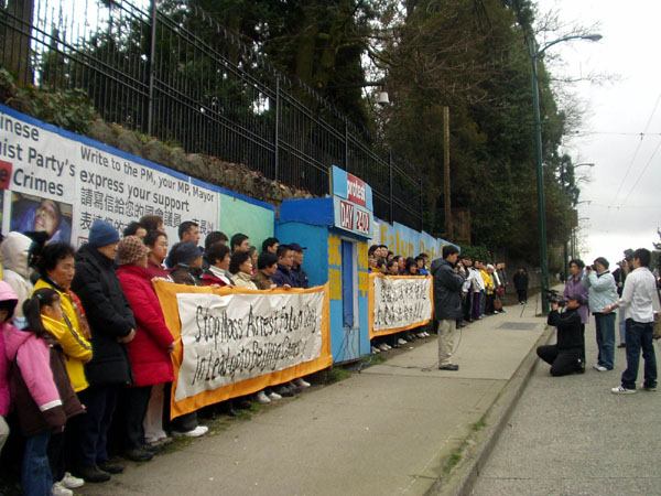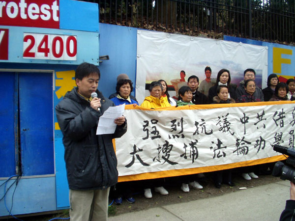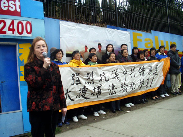 温哥华法轮功发言人布朗文(Sophia Bronwen)主持了集会,谴责中共以举办奥运为借口,大肆搜捕北京的法轮功学员,加剧迫害,这是对奥运精神的公然践踏。