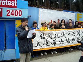 ![]() 中领馆前,法轮功学员抗议集会现场 |