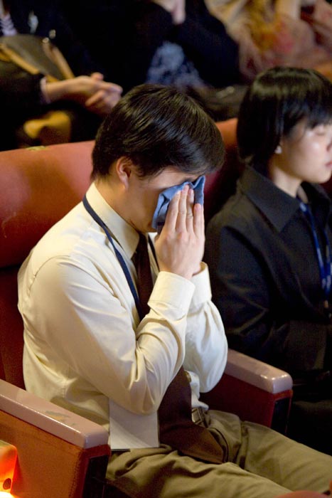 ![]() 神韵纽约艺术团三月十六日下午在台北第三场的演出,观众凝神观看 |