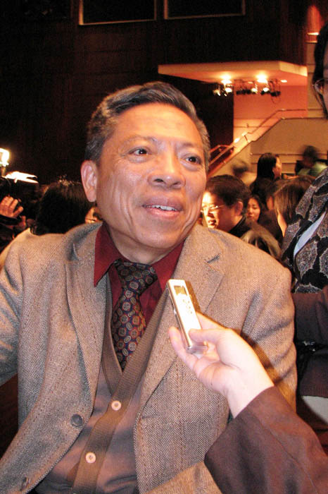 ![]() 政治大学台湾文学研究所所长陈芳明与夫人一同观赏三月十七日神韵在台北第五场的演出。 |