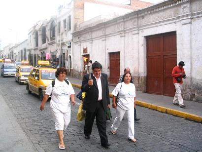 ![]() 卡格拉约市(Chaclacayo)市长先生阿尔弗雷多•巴而咖尔歇接过火炬后参与步行 |