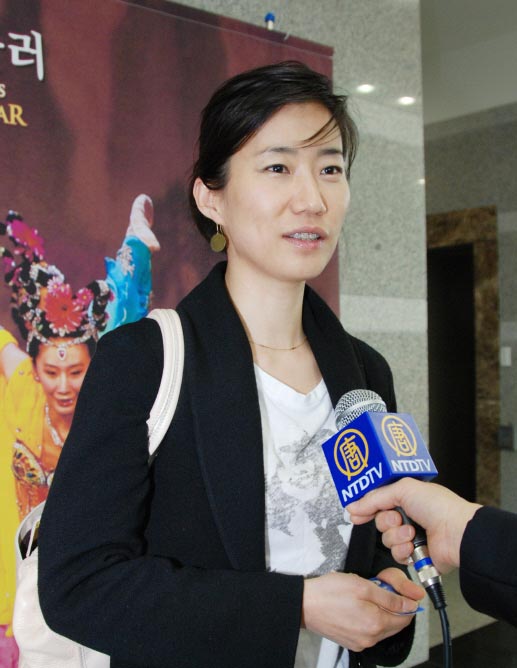洪宇洋行副行长黄明淑在首尔看过神韵后,又偕好友回故乡再观神韵。她认为人应觉醒,科学并非万能,“应尽早来听神的讯息,并传给每一个人。今天看演出,我激动的泪水从心灵深处涌出,止不住往外流。不知这些演员付出了多少心血,我想向他们一个一个跪下以表达感激。”对中共无耻干扰下,神韵仍能在大邱上演,她认为大邱市民比釜山市民幸运多了,“今天神韵的降临将为我的故乡带来更多的祝福!”