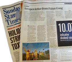 二十三日,《周日星报》以整版配图刊登了新西兰法轮大法佛学会的公开信,公开信中写道: