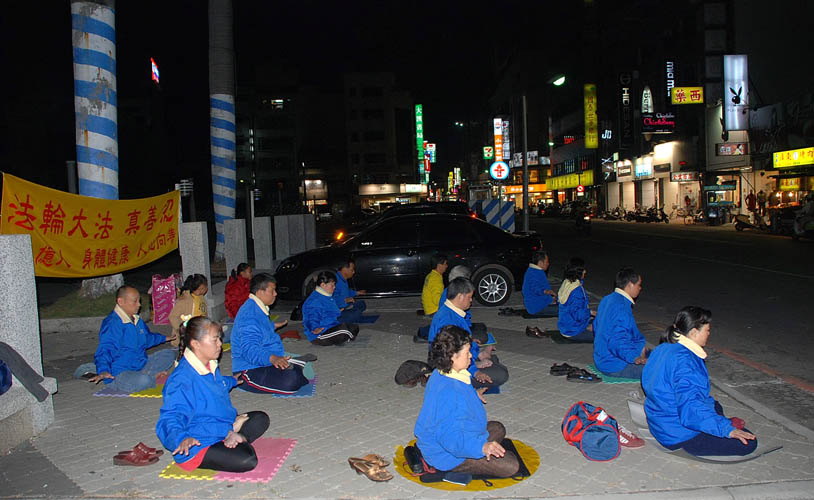 一位法轮功学员说:“我发觉他们很喜欢看我们炼功,台湾跟大陆完全不同,他们到了这个自由的地方,不必有所顾忌,这是他们在大陆看不到的。”这位法轮功学员表示,几年前,他们在文化路上建立了夜间炼功点,他们不想漏掉任何一位有缘人,希望把法轮大法的美好及中共迫害法轮功的真相传达给被中共蒙骗的大陆民众。