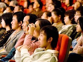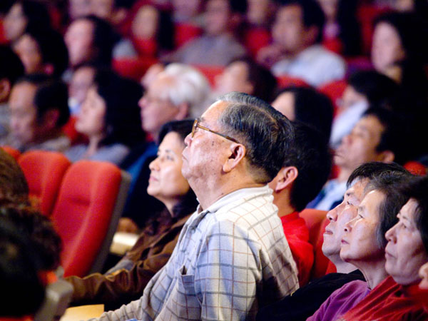 ![]() 三月八日高雄最后一场神韵晚会演出,观众专注看节目的神情。 |