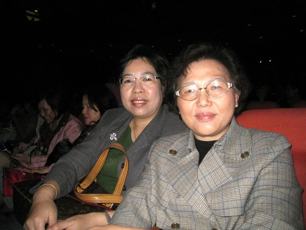 ![]() 镀锌科技公司林丽玉(左)和朋友邹协理(右)来欣赏晚会。林丽玉说:听他们唱歌我就想要流泪,一次一次的感觉都不一样。 |