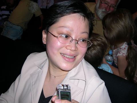 李小姐非常欣赏舞蹈的古典韵味和歌曲的词意,她说:“我觉得各方面的服装、道具,还有一些手法的表现,就象(晚会)主持人介绍说的古典的舞蹈的精彩,因为以前我在国内也学过一点舞蹈艺术,我觉得神韵的编舞,都是费尽心思。歌词都写的很好。”
