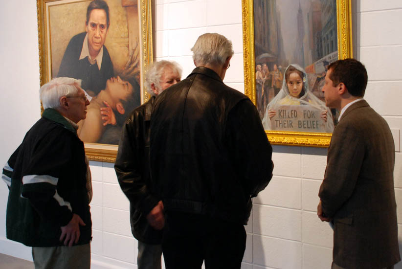 历时近一个月的画展,参观者们被画作深深的打动。人们在画作前面慢慢走过,在每一幅前面都呆上很久的时间,被画面上人物的表情深深的打动。邻居小城菲利普斯堡的画家包伯.雷德蒙(Bob Redmond)说,“太好了,非常感人。人物的眼睛简直难以置信。”他说的是名为“儿子”的画作,作品中一个老人抱着他因修炼法轮功而被中共迫害致死的儿子的尸体。