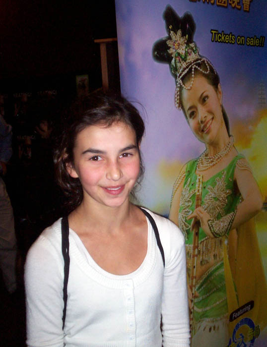迪亚、郝兰妲(Claudia Holland)是一个颇有艺术气质的十二岁女孩,已有九年跳芭蕾舞和拉小提琴的经验。她说:“我喜欢所有的舞蹈,她们的化妆和服装都非常绚丽多彩。我最喜欢《仙女踏波》,我还喜欢二胡独奏,因为二胡和小提琴有点相似,二胡只有两根弦但她拉的这么好听。”