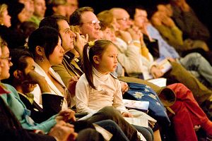 ![]() 观众聚精会神地欣赏神韵晚会 |