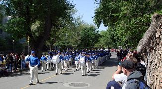 四月十九日星期六,当地和周边地区的法轮功学员以军乐队游行,舞台表演及真相展台等多种形式,参加了每年一度在加州大学戴维斯分校举办的“野餐节”。