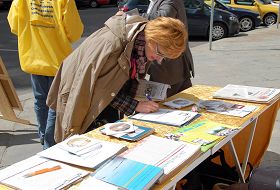 ![]() 人们认真倾听法轮功学员讲述发生在中国的迫害真相 |