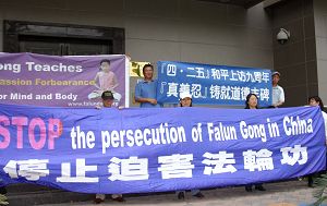 ![]() 休士顿中领馆前,法轮功学员纪念四•二五九周年 |