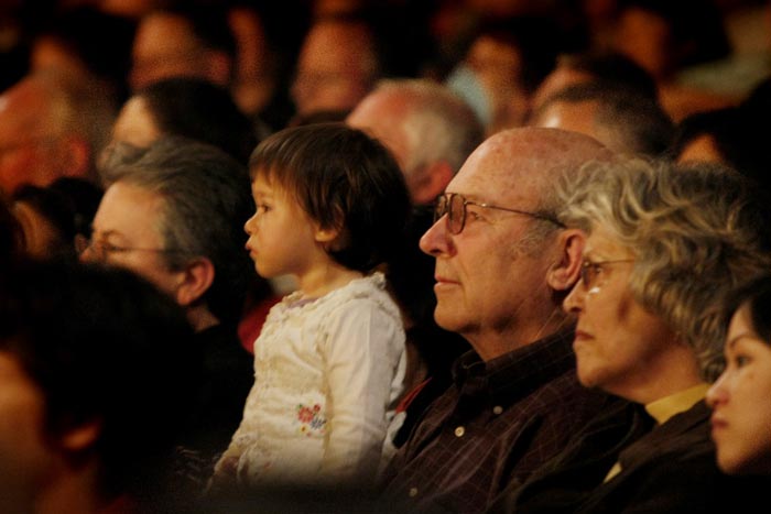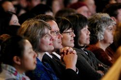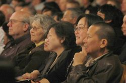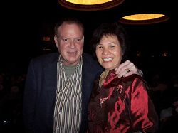 ![]() 曾在美国某大银行任职资深副总裁多年的Bob Barratt偕女友观看西雅图的第二场晚会。他们表示,很喜欢这台演出。 |
