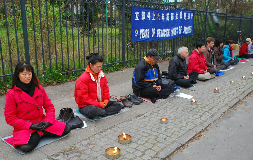 ![]() 丹麦法轮功学员在中使馆前集会,纪念四•二五 |