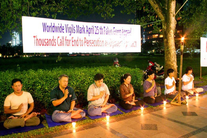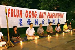 【明慧网二零零八年四月二十七日】四月二十五日晚六点半,印尼法轮功学员来到中使馆前举行烛光纪念活动,同时向世人表达法轮功反的心声。