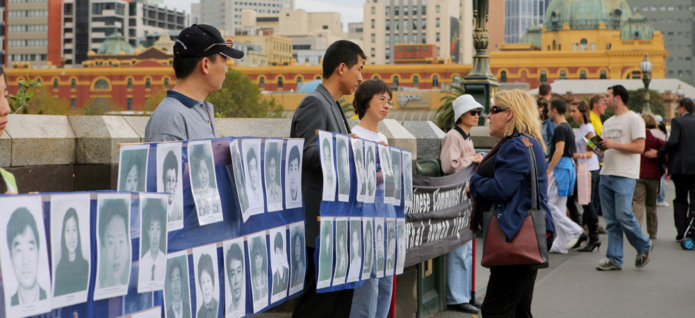 Dianne Padalini是个土生土长的澳洲人,每天也有打坐的习惯,她说,驾车时偶然路过王子桥,这时心中一个声音告诉她,要她停下车过来看一看,她就在桥上散步,于是看到了法轮功学员的“勇气长城”。她说,“我听到这些打坐的人,善良的人,信仰真善忍的人被从街上抓走折磨,感到很震惊,更令我震惊的是,居然有人取走他们的器官拿去卖。”“我个人相信,全世界必须觉醒,我们必须祈祷,用正的思想的力量改变中国政府的做法。”