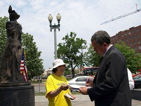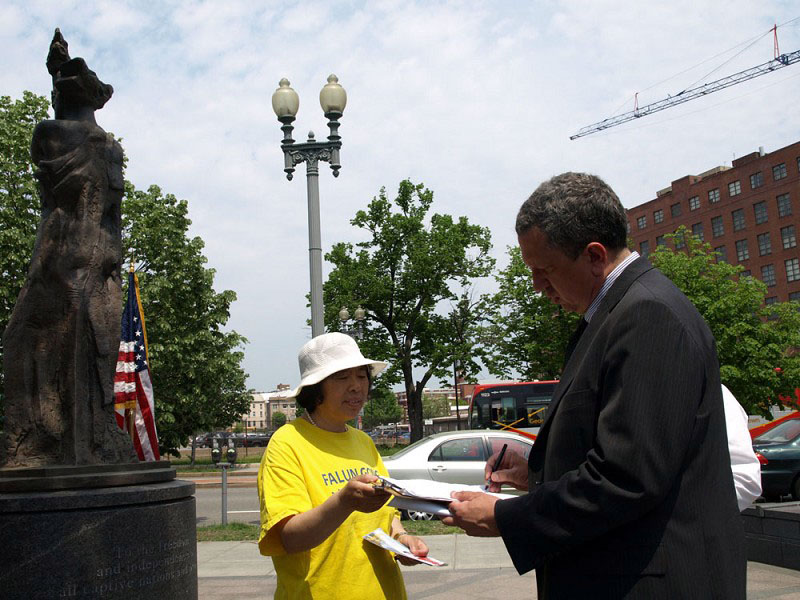 ![]() 奥尔托在呼吁制止中共迫害法轮功的征签表上签名 |