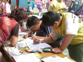 现场很多民众及小朋友一听,纷纷签名支持反迫害,有的小朋友看到在大陆法轮功学员因为做好人被迫害的图片就说「好可怜喔!」一听到自己的签名可以帮助被迫害的法轮功学员,就马上签下名字。