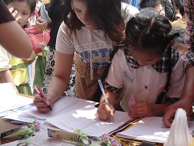 ![]() 小朋友听到自己的签名可以帮助被迫害的法轮功学员,就马上签下名字,为正义发声。 |