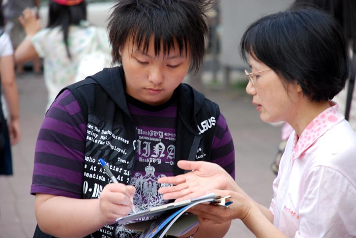 经过东门圆环留下正义签名的,有年轻的夫妻,有补习的学生,有逛街的年轻人,还有异族脸孔的外国人。