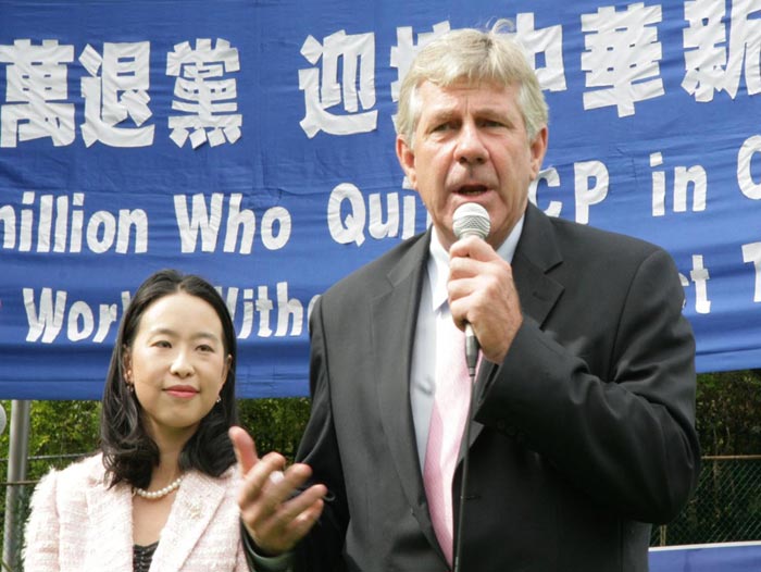 人权活动家、诗人麦克·达比在集会上用中文呼喊:法轮大法好!基督教好!天主教好!中国共产党非常不好!我反对共产党,我支持自由!在澳洲本国我们都有自由,为什么在中国大陆什么自由都没有?这个事情我不愿意在将来再看见。麦克同时在集会上呼吁澳洲政府关注中国人权现状,特别是制止中共机构活体摘取法轮功学员器官牟利的恶行。