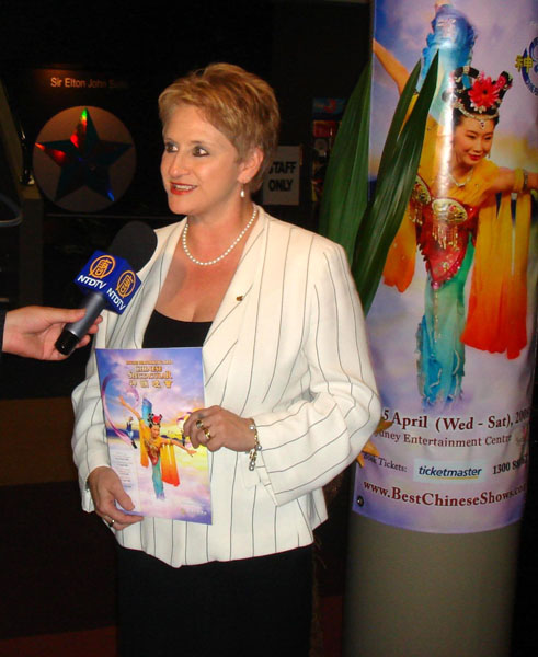 Ficarra女士表示:“我很高兴今晚能来观赏这个晚会,让我更了解中国五千年的文化。演出、场景都很壮观、丰富。舞蹈演员身体高度的相互协调与技艺表演,还有男中音、女高音等,连主持人主持的方式,一切都非常非常的专业。”