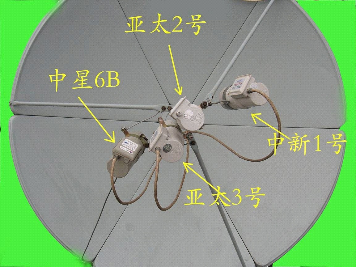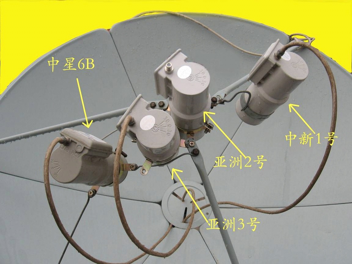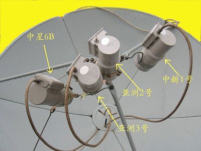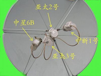 安装经验介绍:这四个高频头排列是左上右下(以顺锅面方向看,不是面对锅面看),中新1号(亚太新唐人台)在主收的东面,亚洲3号在主收的西面,中星在亚洲3号西面