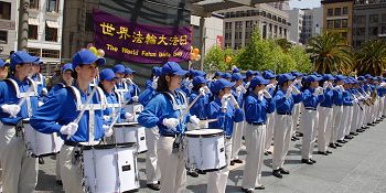 二零零八年五月十三日是第九届世界法轮大法日,又是大法洪传于世十六周年纪念日,旧金山地区的法轮功学员五月十日在旧金山市中心的联合广场举行庆祝活动,歌颂大法恩德,并祝贺师尊生日快乐。