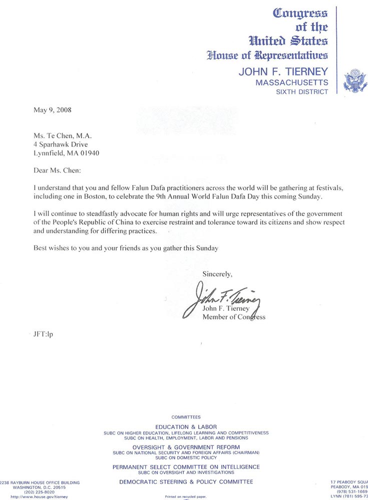 我知道您和其他法轮大法修炼者将在波士顿及世界各地举行一年一度的活动,庆祝第九届世界法轮大法日。
