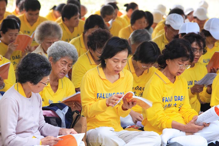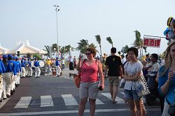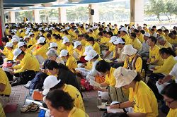 这是一个大好天气,风和日丽,学员们或搭游览车或相偕开车,老的、少的、阖家齐聚在旗津景点“黄槿树下”,大家满心喜悦,感念师恩浩大,上千名学员一起学法,交流,共同精进,共同提升,于中午发正念后结束。和谐的气息,大家对环境的维护,让场地负责人,旗津发展协会督导蔡先生赞佩法轮功学员是他见过中最优质的团体。