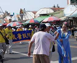 ![]() 法轮大法天国乐团的乐音响彻云霄,吸引了许多游客驻足观看 |