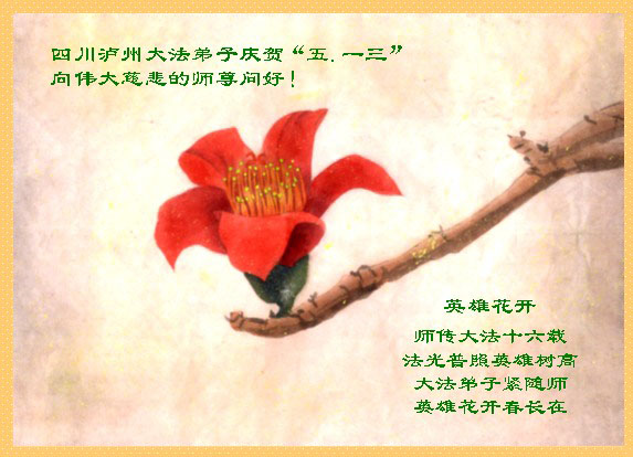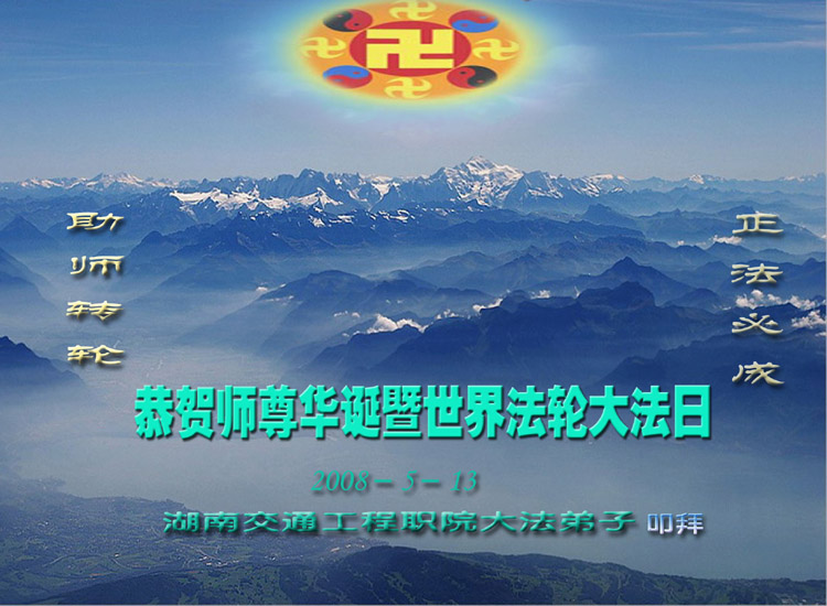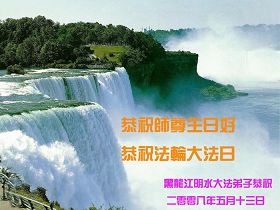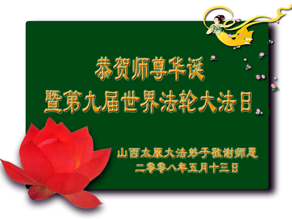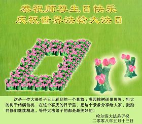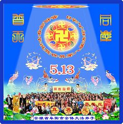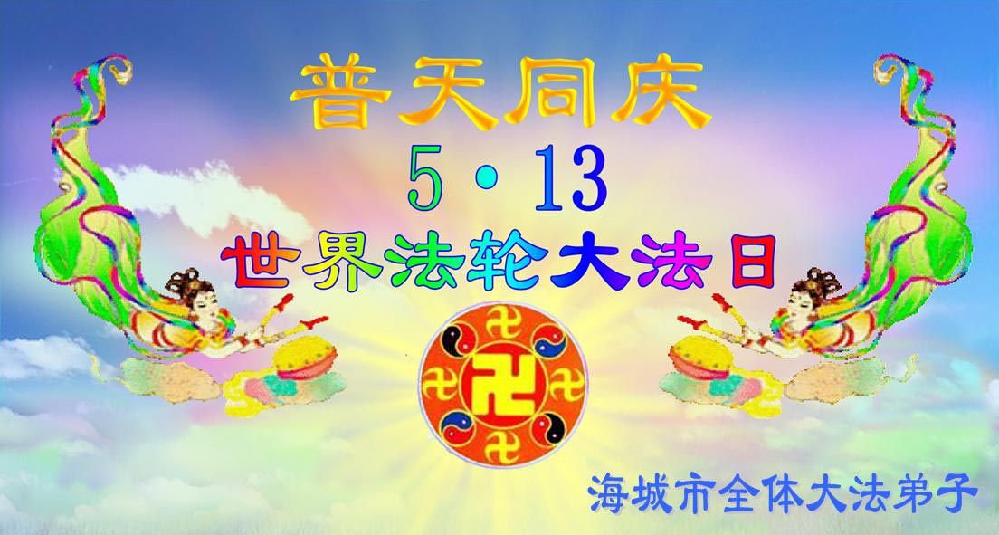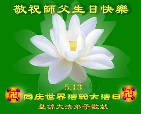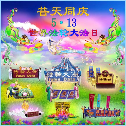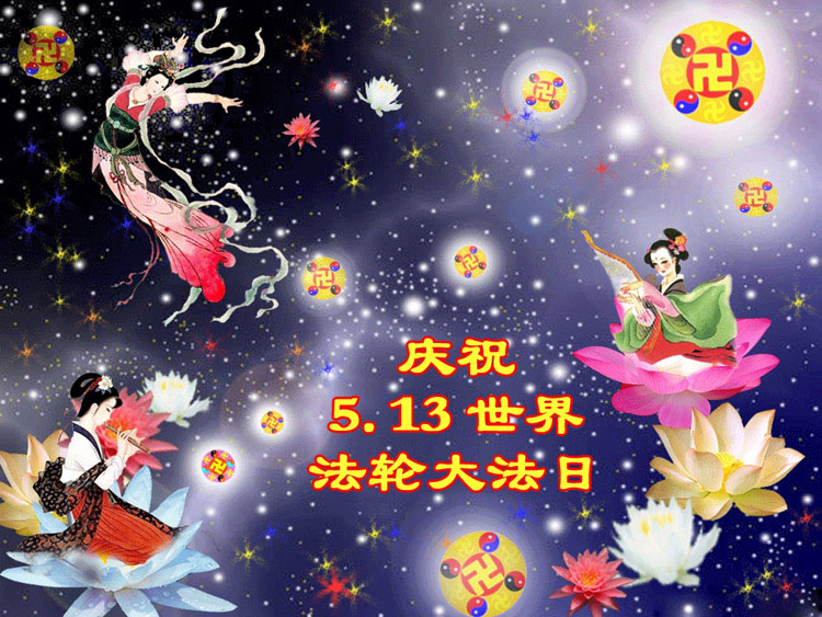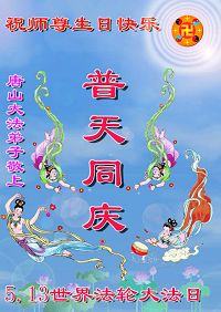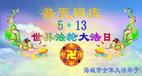 五月十三日是世界法轮大法日又是师尊的诞辰日,在这喜庆的日子里,大法弟子更加想念师尊的大恩大德,感谢恩师的救度之恩,决心努力做好三件事,完成史前洪愿兑现我们的誓约,圆满同回天堂。
