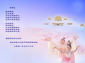 十六年前,恩师将洪大的佛法传于天上人间,宇宙开始了亘古未有的新纪元,值此世界法轮大法日来临之际,沈阳全体大法弟子恭祝慈悲伟大的师父华诞。冬去春来、万物归新,我们一定不忘师尊谆谆教诲,更加成熟理智,勇猛精進,做好三件事,不负师恩,救度更多众生,完成我们的史前大愿。