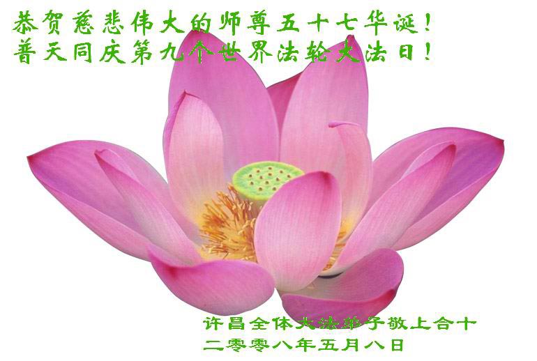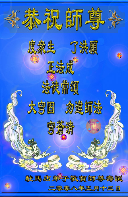 信阳大法弟子向慈悲伟大师尊顶礼合十 2008年5月6日