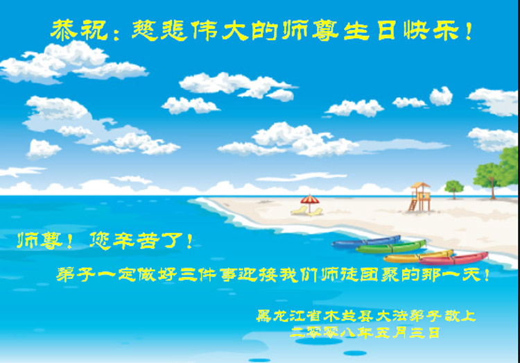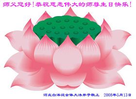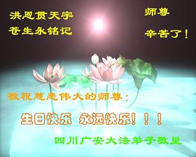 慈悲伟大的师父,您辛苦了!在这普天同庆的日子里,祝您生日快乐!请您放心,衡水大法弟子一定不辜负您的慈悲苦度,救度众生,正念正行,圆满随师还! 河北衡水大法弟子