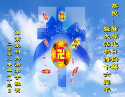 祝法轮大法洪传十六周年!