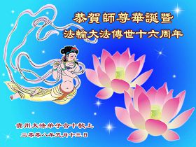 成都大法弟子恭祝师尊生日快乐!庆祝5.13世界法轮大法!辽宁鞍山孟氏家族7名大法弟子及全体家属恭祝师尊生日快乐!北京昌平大法弟子及其全家恭祝慈悲伟大的师父生日快乐!沈阳刘氏二姐妹大法弟子恭祝师尊生日快乐!四川宜宾大法弟子恭祝慈悲伟大的师尊生日快乐!潍坊地区全体大法弟子恭祝师尊生日快乐!重庆新桥地区全体大法弟子恭祝慈悲伟大师尊生日快乐!祝贺法轮大法洪传十六周年暨第九届世界法轮大法日!重庆大法弟子恭祝慈悲伟大师尊生日快乐!齐齐哈尔市昂昂溪全体大法弟子恭祝师尊华诞暨洪传大法十六周年!热烈祝贺世界法轮大法日!延庆大法弟子祝师尊生日快乐及祝法轮大法洪传十六周年!淄博市全体大法弟子恭祝恩师华诞!庆祝世界法轮大法日!辽宁归州乡、二台乡、九寨镇全体大法弟子恭祝慈悲伟大师尊生日快乐!洛阳地区大法弟子祝慈悲伟大的师尊生日快乐!四川兴文县老年大法弟子恭祝慈悲伟大的师父生日快乐!辛集市大法弟子祝师尊生日快乐潍坊全体大法弟子恭祝慈悲伟大的师尊生日快乐!黑龙江省肇州全体大法弟子恭祝师尊华诞!云南省建水县大法弟子恭祝师尊生日快乐!双鸭山大法弟子恭祝师尊生日快乐!山东枣庄大法弟子敬贺伟大师尊华诞!河北省大法弟子祝师父生日快乐!湖南长沙全体大法弟子恭祝师尊生日快乐!大连大法弟子恭祝师尊生日快乐!造纸行业的大法弟子祝伟大的师尊生日快乐!北京大法弟子祝师父生日快乐!山东枣庄大法弟子恭祝伟大的师尊生日快乐!恭贺师尊传法十六周年,暨世界法轮大法日!北京海淀区中关村地区大法弟子一家敬祝师尊生日快乐!江苏高校大法弟子恭祝最慈悲伟大的师尊生日快乐!东莞大法弟子祝慈悲伟大的师父生日快乐!被非法关押在黑龙江省北安监狱的全体大法弟子及其家人恭祝伟大的师尊节日快乐!长春市教育界大法弟子恭祝师尊生日快乐!江苏全体大法弟子敬祝最慈悲伟大的师尊生日快乐!北京全体大法弟子恭祝伟大的师尊生日快乐!山东省单县大法弟子恭祝师尊生日快乐!山东省农村大法弟子贺师尊华诞!南京大法弟子遥祝师尊生日快乐!衡阳市珠晖区某学法小组全体大法弟子恭祝慈悲伟大的师尊生日快乐!颂祝世界法轮大法日!吉林市大法弟子祝师父生日快乐!北京大法弟子恭祝慈悲伟大的师尊华诞暨法轮大法洪传十六周年!大连一家庭资料点全体大法弟子恭祝慈悲伟大的师尊生日快乐!山西汾西大法弟子祝慈悲伟大的师尊生日快乐!北京海淀清河大法弟子和大法小弟子恭祝师尊生日快乐!天津塘沽渤海石油大法弟子祝师父生日快乐!北京市延庆县大法弟子祝师尊生日快乐!湖南省湘阴县全体大法弟子敬祝师尊生日快乐!热烈庆祝全世界法轮大法日洪传16周年!河北涿州全体大法弟子恭祝慈悲伟大的师父生日快乐! 祝贺法轮大法洪传世界十六周年!辽源地区大法弟子恭祝伟大师尊生日愉快!热烈庆祝法轮大法洪传十六周年!黑龙江佳木斯市大法弟子一家祝师父生日快乐!庆祝大法洪传十六周年!沂水流落在外大法弟子恭祝师尊生日快乐!庆贺世界法轮大法日!河北曲周县全体大法弟子恭祝慈悲伟大的师父生日快乐!西安大法弟子祝慈悲伟大的师尊生日快乐!佳木斯在校学生学法小组祝师父生日快乐!黑龙江省佳木斯市一学法小组恭祝师尊华诞!黑龙江省伊春市美溪大法弟子祝师父生日快乐!山东枣庄全体大法弟子敬祝慈悲伟大的师父生日快乐!哈尔滨市呼兰区全体大法弟子恭祝慈悲伟大的师尊生日快乐!河北行唐县全体大法弟子恭祝师尊生日快乐!大庆大法弟子恭祝师尊生日快乐!河南省淮阳县全体大法弟子敬祝师父生日快乐!全体荆州市大法弟子恭祝师尊生日快乐安徽寿县全体大法弟子伟大慈悲的师尊生日快乐!山东诸城大法弟子祝师尊生日快乐!庆祝法轮大法洪传世界十六周年!唐山丰南区大法弟子恭祝师尊生日快乐!湖南新宁大法弟子恭祝师尊生日快乐!北京崇文区大法弟子恭祝师尊生日快乐昆明大法弟子恭祝师尊生日快乐!大庆大法弟子祝师父生日快乐!北京市大法弟子恭祝慈悲伟大的师父生日快乐!四川省安岳县全体大法弟子恭祝慈悲伟大的师父生日快乐!双城市一家三人祝师父生日快乐!大陆大法弟子恭祝师尊华诞!桦南县全体大法弟子祝师父生日快乐!祝法轮大法洪传十六周年!广东连平县全体大法弟子恭祝伟大慈悲师父生日快乐!内蒙古赤峰市宁城县全体大法弟子恭祝慈悲、伟大的师尊生日快乐!河南登封全体大法弟子祝慈悲伟大的师尊生日快乐!辽宁北镇地区全体大法弟子祝师尊生日快乐!同贺、同庆5.13世界法轮大法日!石家庄大法弟子恭贺师尊生日快乐!长春大法弟子恭祝师尊生日快乐河北井陉县全体大法弟子恭祝慈悲伟大的师尊生日快乐!河北省沙河市全体大法弟子恭贺师尊华诞,同庆法轮大法洪传十六周年!湖南祁东县全体大法弟子恭祝师尊生日快乐!山东齐河县全体大法弟子恭贺法轮大法洪传世界十六周年!兰州市城关区的弟子恭祝师尊生日快乐!武汉全体大法弟子恭祝师尊生日快乐!河北省高阳县全体大法弟子恭祝师尊生日快乐!佳木斯医务界大法弟子恭祝师尊华诞及法轮大法洪传十六周年!广西百色大法弟子恭贺师尊华诞暨第九届世界法轮大法日!大庆大法弟子及被非法关押在大庆监狱的大法弟子恭祝师父生日快乐!太原一学法小组恭贺师尊华诞暨第九届世界法轮